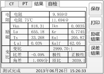 智能互感器測試儀的試驗結果。