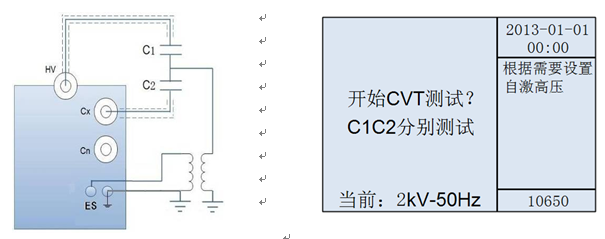 2、不拆高壓引線測試CVT電容值和介損測量模式:CVT自激法。電壓≤2kV