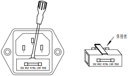 警告:1、為了避免觸電事故的發(fā)生,在更換保險(xiǎn)絲之前請把儀器上的電源插頭拔掉,確保儀器上無電源電壓。